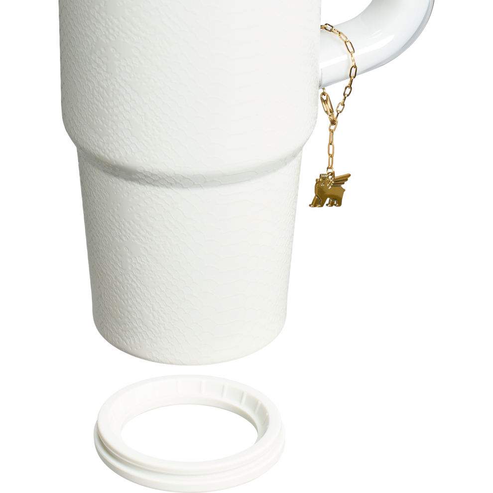 Some luxury whispers. Some shouts. With a show-stopping snakeskin texture, the Quencher® Luxe is hydration for true collectors. Features include a shining gold charm that you can add or remove with a jewelry clasp. Inspired by vintage purses, the newest Tritan™ handle brings the elegance. This one just knows.