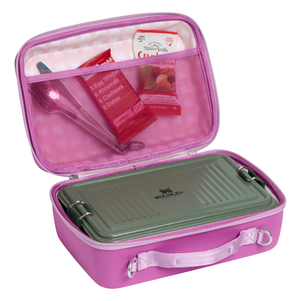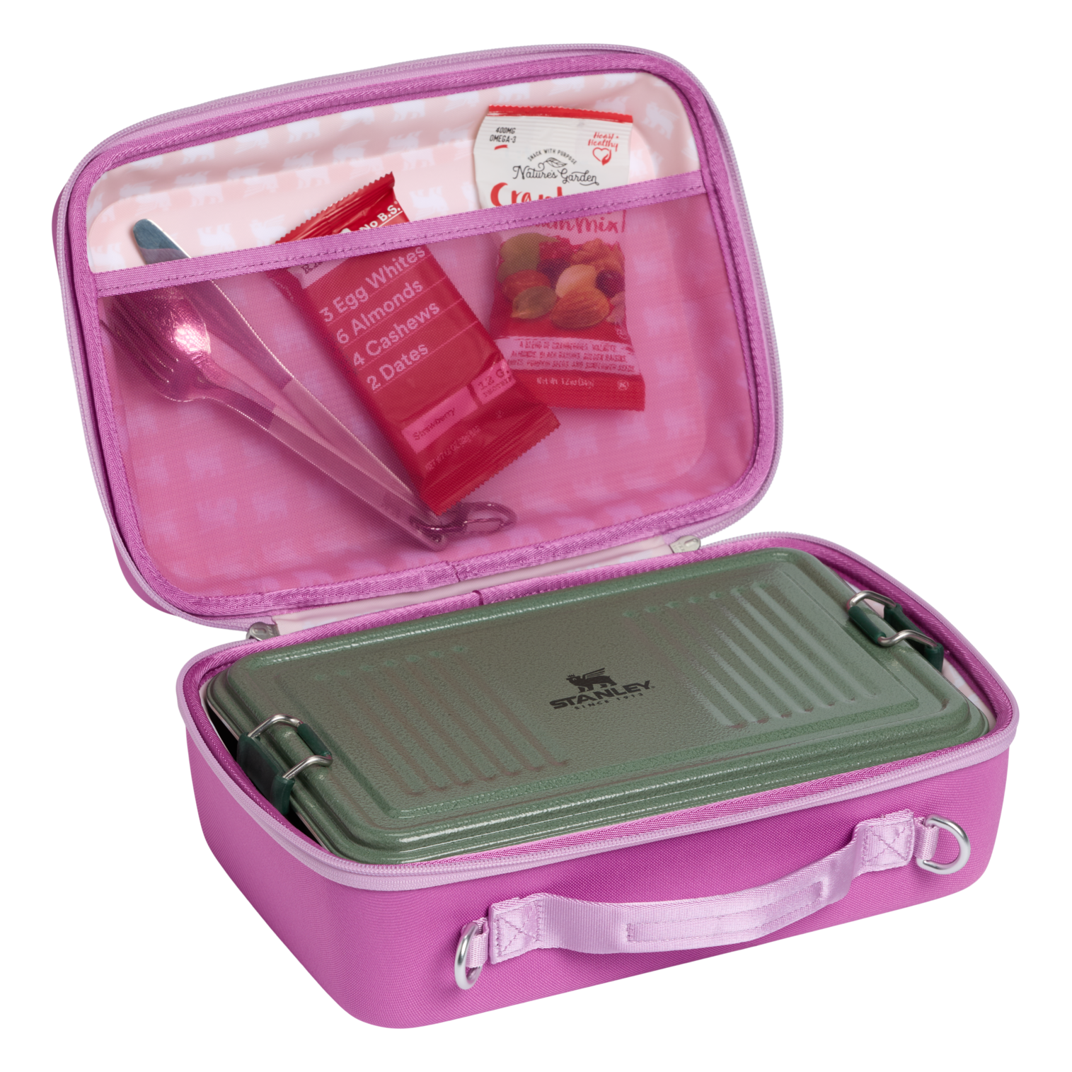 The 6.3-quart All Day Midi Lunch Box holds your lunch at the right temp for hours, thanks to molded EVA insulation. The crush resistant EVA body holds its shape. So your PB&J doesn’t get smashed. An inner mesh pocket stores your silverware and a small snack. Or an ice pack for extra chill. Grab your lunch box by the handle or attach the strap when you're on the go.