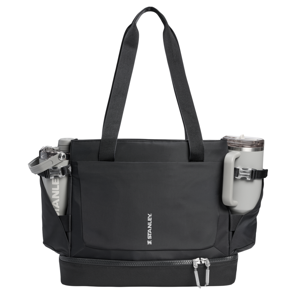 The Vitalize™ Tote carries it all. Outside, the Tumbler Securing Belt and Pocket holds your 40-ounce Quencher® ProTour or Vitalize™ Shaker with easy access. A front zip pocket holds your phone, keys and wallet. Inside, the zippered main compartment has space for a jacket or change of clothes, and a sleeve for your laptop. The zippered, multi-function bottom compartment grows upward to hold food containers, shoes, post-workout clothes and more. Grab the carry straps or toss it over your shoulder and get started.